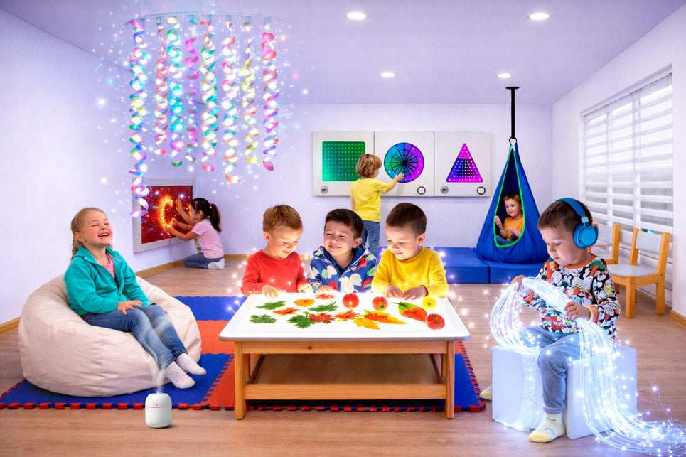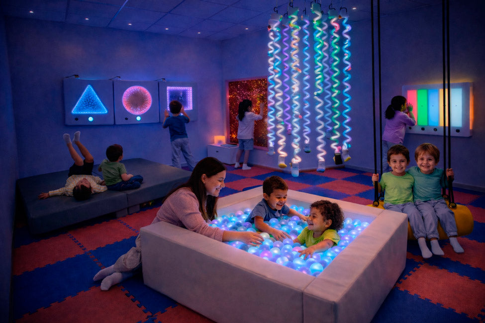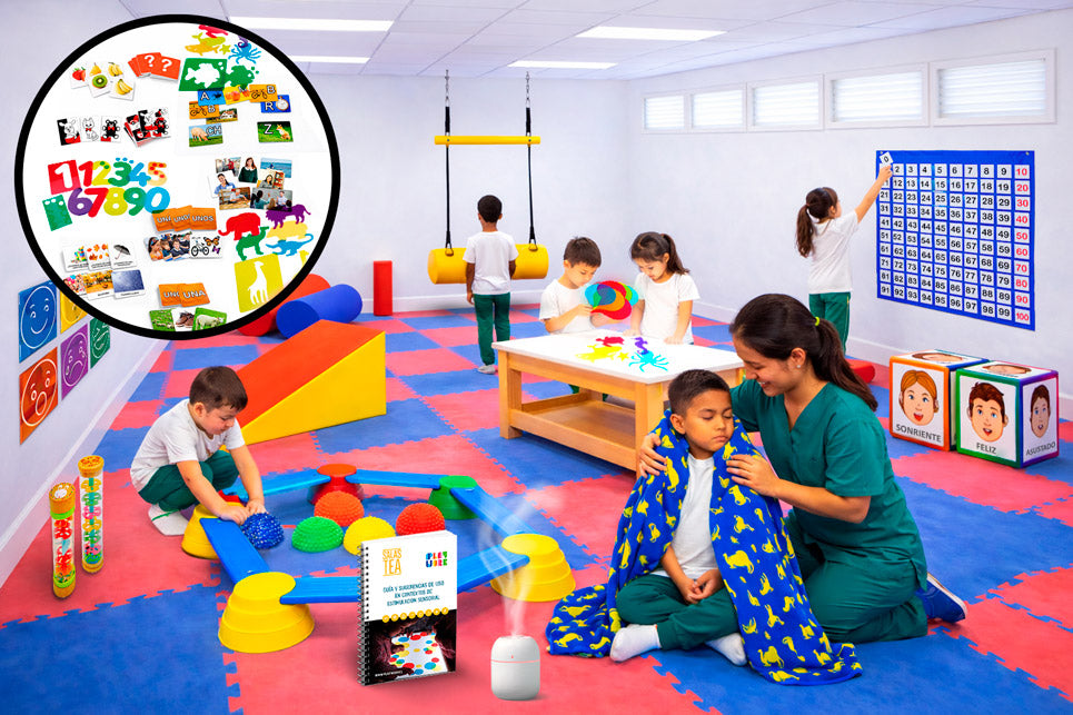 Kit completo para estimulación sensorial y regulación emocional en establecimientos educacionales y centros de salud. Ideal para salas de calma y desarrollo integral.