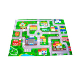La alfombra “Mi Ciudad” de 140 x 200 cm es un espacio de juego interactivo que estimula la imaginación, el juego simbólico y el aprendizaje de normas viales de forma divertida. Con calles, edificios, estaciones y espacios urbanos ilustrados.
